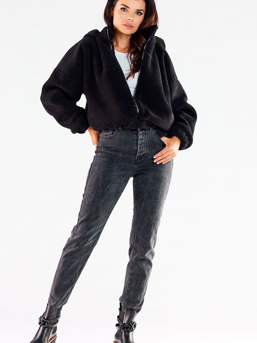 Zippered jacket with hood, made of pleasant, warm material. It will be perfect as an outer garment in autumn. Finished with a ribbed hem. This jacket can be an excellent basis for any styling. The jacket is fully lined. The product is made in Poland.