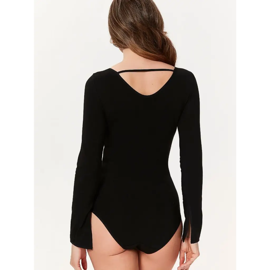 Body with stripes on the neckline Rosie 902. Body with long sleeves, slit at the wrist. Made entirely of soft, durable cotton. Comfortable fastening at the crotch. Serek neckline. Combination of the most fashionable intertwines at the front on the neckline and at the back on the neck.